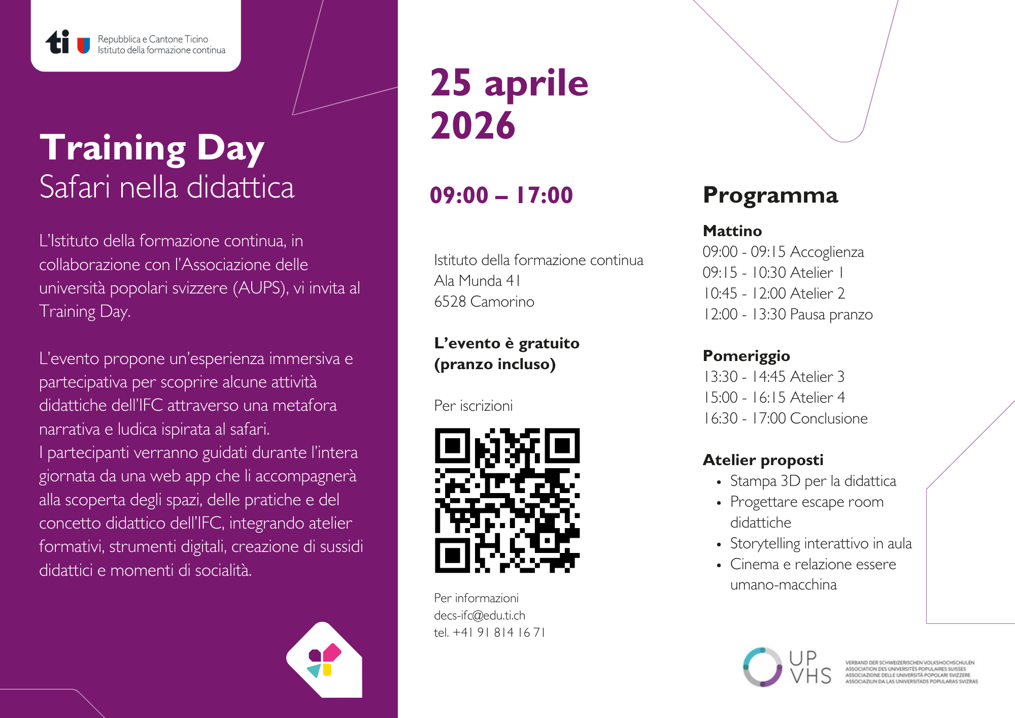 Sabato 25 aprile 2026 si terrà il Training Day ticinese a Camorino. L’evento propone un’esperienza immersiva e partecipativa per scoprire alcune attività didattiche dell’IFC attraverso una metafora narrativa e ludica ispirata al safari.